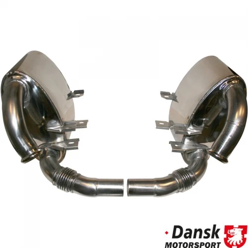 EKSOS potter 2 stk ,PORSCHE 996 3,4 og 3,6 L - SUPER SOUND, Køp dette system, hvis du vil have en prisvenlig eksos med ovale bokser. Dette udstødningssystem har en mere aggressiv og sporty lyd. Hvis du vil ha en mere støysvak version, men bare en smule mere sporty enn OEM, skal du se efter Dansk 96.300S eller 96.330S.