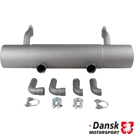 Exhaust rear, Sport, with two tail pipes for bumper. Made of steel with grey heat resistant paint