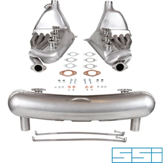 Exhaust set, Racing, with two Ø63.5 mm tail pipes. Including "Big Bore" heat exchangers with Ø41 mm tubes. For 2.7/3.0 mo...