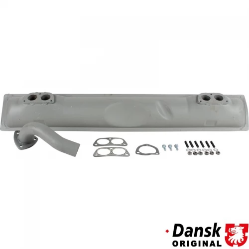 Exhaust set rear, with one Ø45 mm tail pipe and mounting kit. Made of grey painted steel