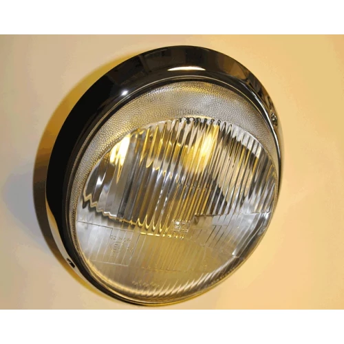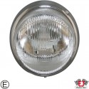Forlykt med kromring, med E-merke. Kan brukes til biler 8/1964-7/1969 uten bruk av positionslys.