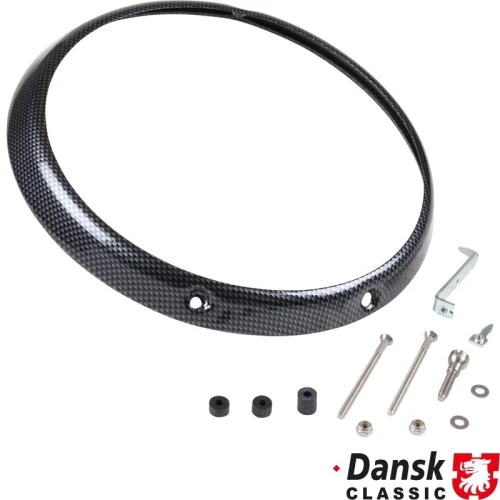 Headlight rim, 3 holes, carbon look, With mounting parts