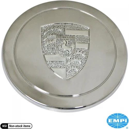 Hub cap with Empi logo, stainless steel, chromed