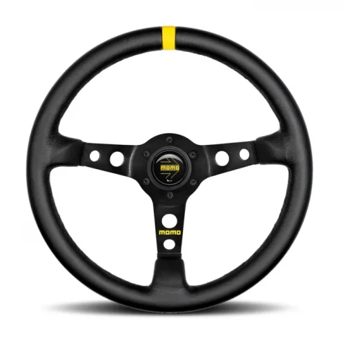 Ratt momo 07 orginal MOMO med sort SKINN 6 hull, 350mm sort eloksert aluminium