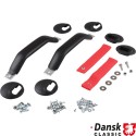 RS Dørhåndtak innvendig door pull handle set with red straps and black handles. Modification on interior door panels needed