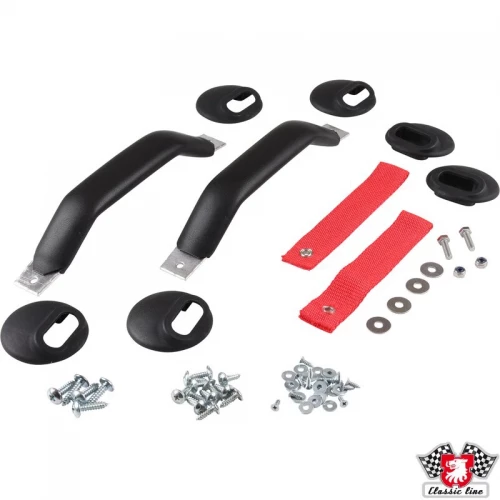 RS Dørhåndtak innvendig door pull handle set with red straps and black handles. Modification on interior door panels needed