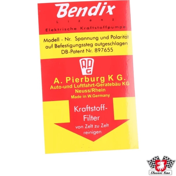 Sticker, "Bendix" on fuel pump