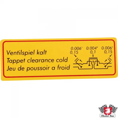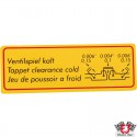 Sticker, "Tappet clearence cold"
