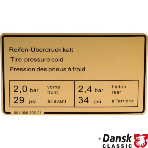 Sticker, tyre pressure