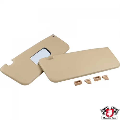 Sun visor set with mirror in passenger side, with clips, beige