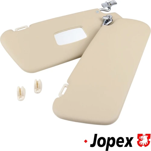 Sun visor set with mirror in passenger side, with clips, cream