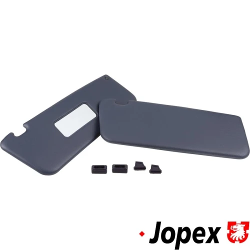 Sun visor set with mirror in passenger side, with clips, dark blue