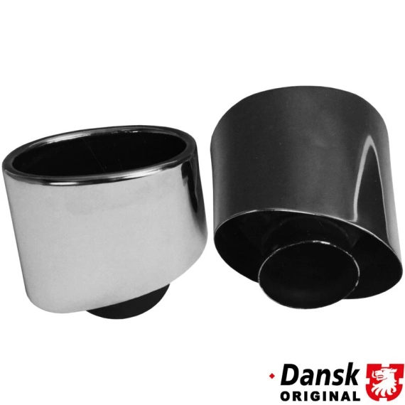 Tail pipe set, left/right. To be mounted on the original exhaust. Made of polished stainless steel