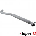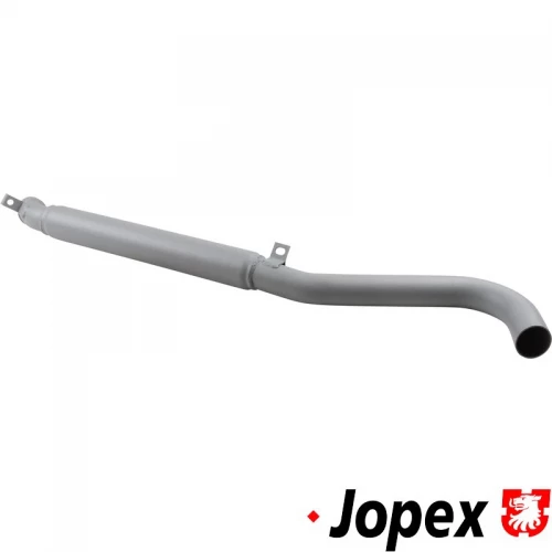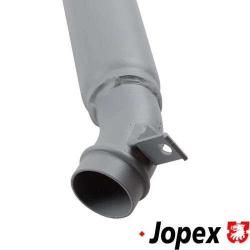 Tail pipe with damper, length 850 mm. Outlet in left side of the vehicle. Made of steel with grey paint